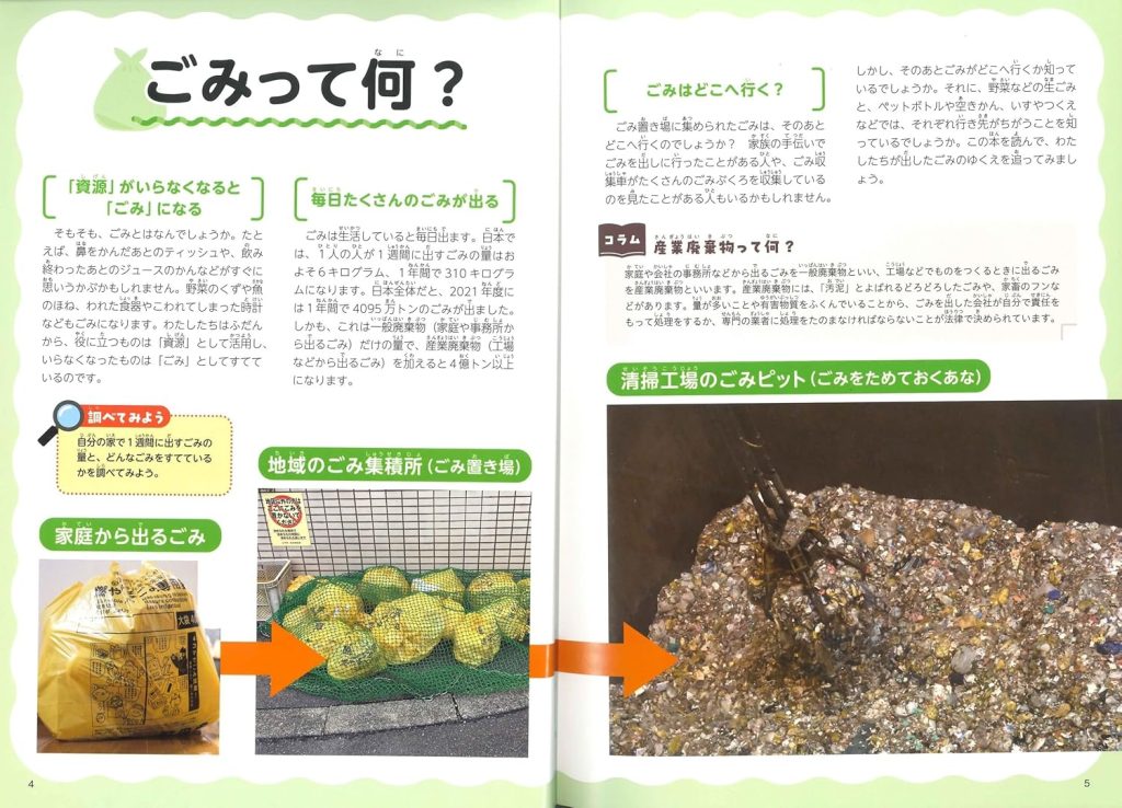 1巻ではごみを運び、選別し、焼却してから最終処分するまでの流れを多くの写真で紹介します。「コラム」には用語解説や役に立つ情報を掲載しています。